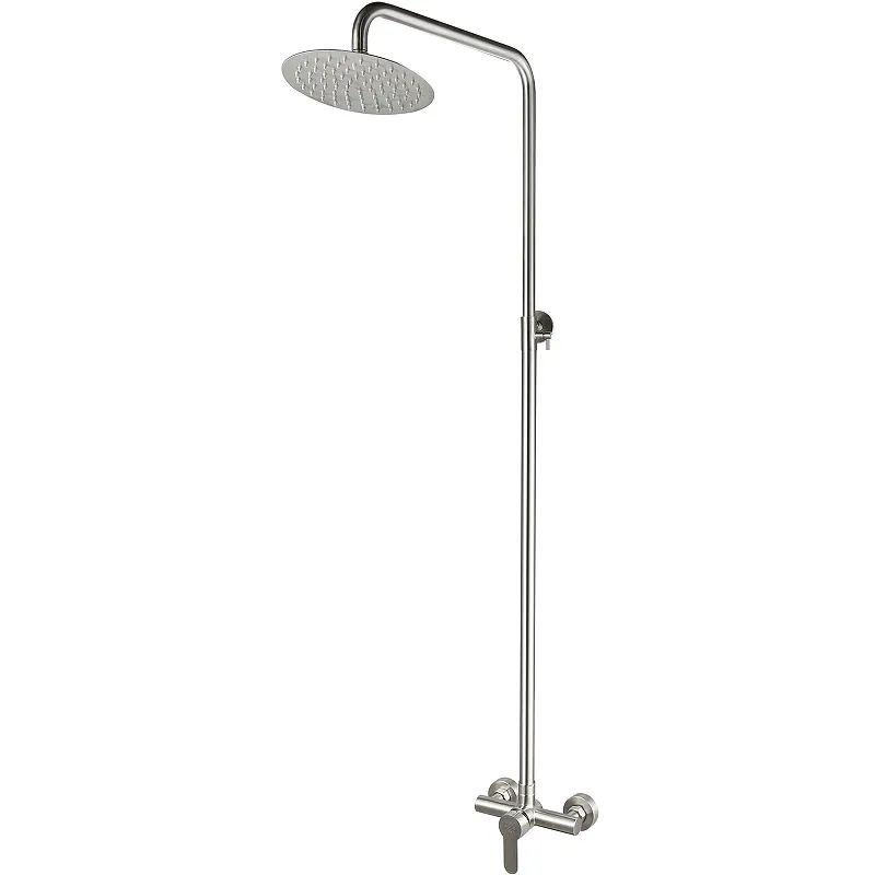 Душевая система Ростовская Мануфактура Сантехники SUS124-003DK-3.Характеристики: Цвет: нержавеющая сталь. Материал: нержавеющая сталь. Диаметр душа: 20 см. Форма: круглая. С однорычажным смесителем. Механизм: керамический картридж 35 мм. Монтаж: настенный. В комплекте поставки: Смеситель. Тропический душ. Стойка для душа. Эксцентрики, отражатели. Паспорт.