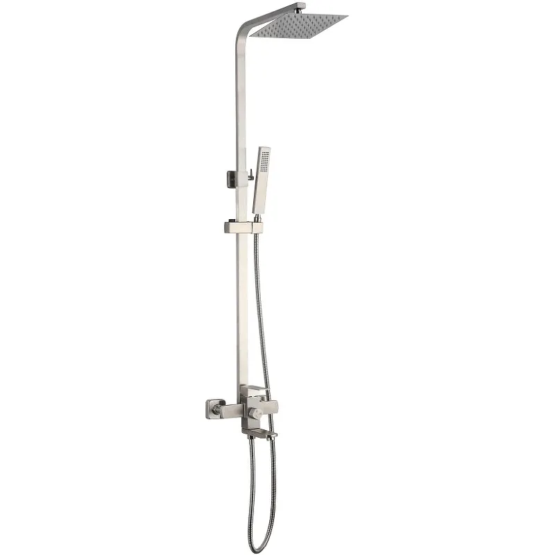 Душевая система Ростовская Мануфактура Сантехники SUS125-009DK.Характеристики: Цвет: нержавеющая сталь. Материал: нержавеющая сталь. Размер верхнего душа: 26х26 см. Форма: квадратная. Форма ручного душа: прямоугольная. С однорычажным смесителем. Механизм: керамический картридж 35 мм. Количество режимов струи ручного душа: 1. Регулируемая по высоте стойка: 71-127 см. Длина шланга: 150 см. Монтаж: настенный. Стандарт подводки: 1/2. В комплекте поставки: Смеситель. Верхний душ. Штанга для душа. Душевая лейка. Душевой шланг. Эксцентрики, отражатели.