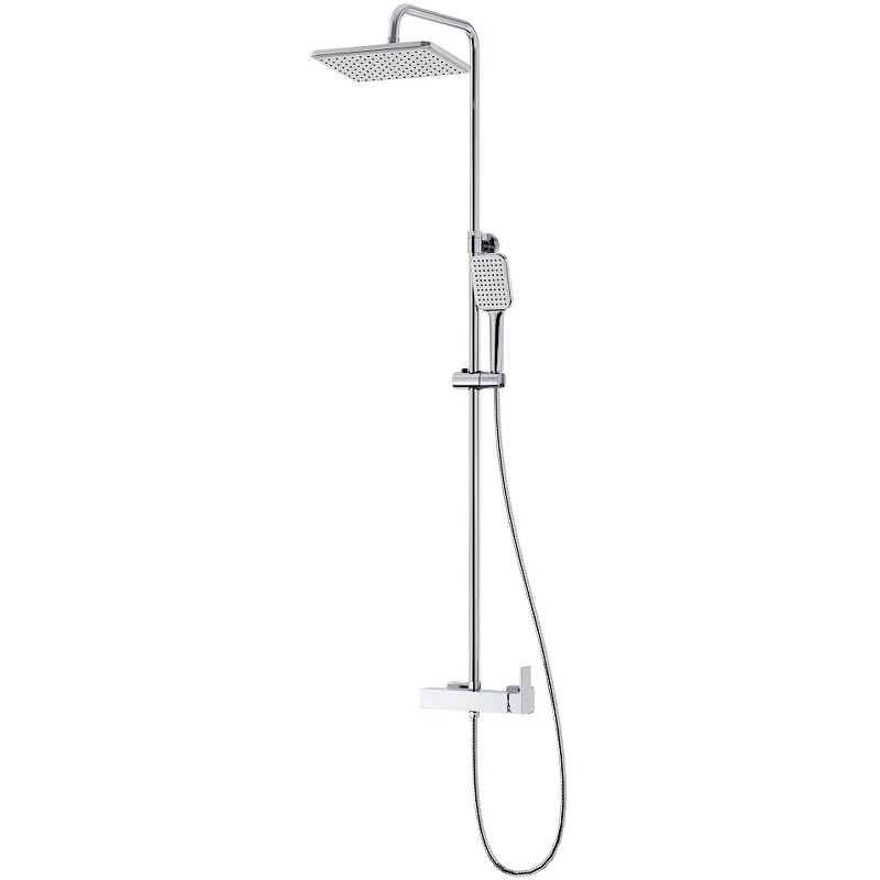 Душевая система Royce Bianco RCS-121603CR.Характеристики: Цвет: хром. Материал: латунь. Управление: однорычажное. Механизм: керамический картридж 35 мм. Стандарт подводки: G 1/2. Размер верхнего душа (ШхД): 288х188 мм. Количество режимов струи ручного душа: 1. Высота душевой штанги: 1466 мм. Длина душевого шланга: 1500 мм. Монтаж: на стену. В комплекте поставки: Смеситель. Верхний душ. Ручной душ. Душевой шланг. Держатель ручного душа. Душевая штанга. Эксцентрики с отражателями. Комплект креплений.