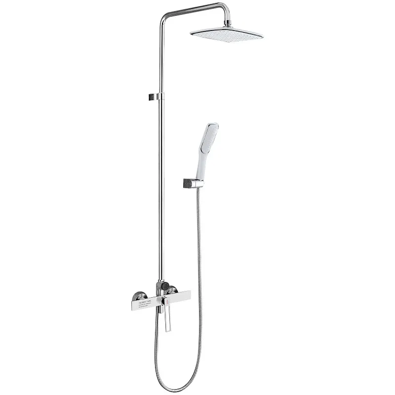 Душевая система Royce Queen RCS-110104CR.Характеристики: Цвет: хром. Материал: латунь. Управление: однорычажное. Механизм: керамический картридж. Излив: фиксированный. Аэратор. Стандарт подводки: G 1/2. Размер верхнего душа (ШхД): 250х170 мм. Количество режимов струи ручного душа: 1. Регулируемая по высоте душевая штанга: 800-1300 мм. Длина душевого шланга: 1500 мм. Монтаж: на стену. В комплекте поставки: Смеситель. Верхний душ. Ручной душ. Душевой шланг. Держатель ручного душа. Душевая штанга. Эксцентрики с отражателями. Комплект креплений.