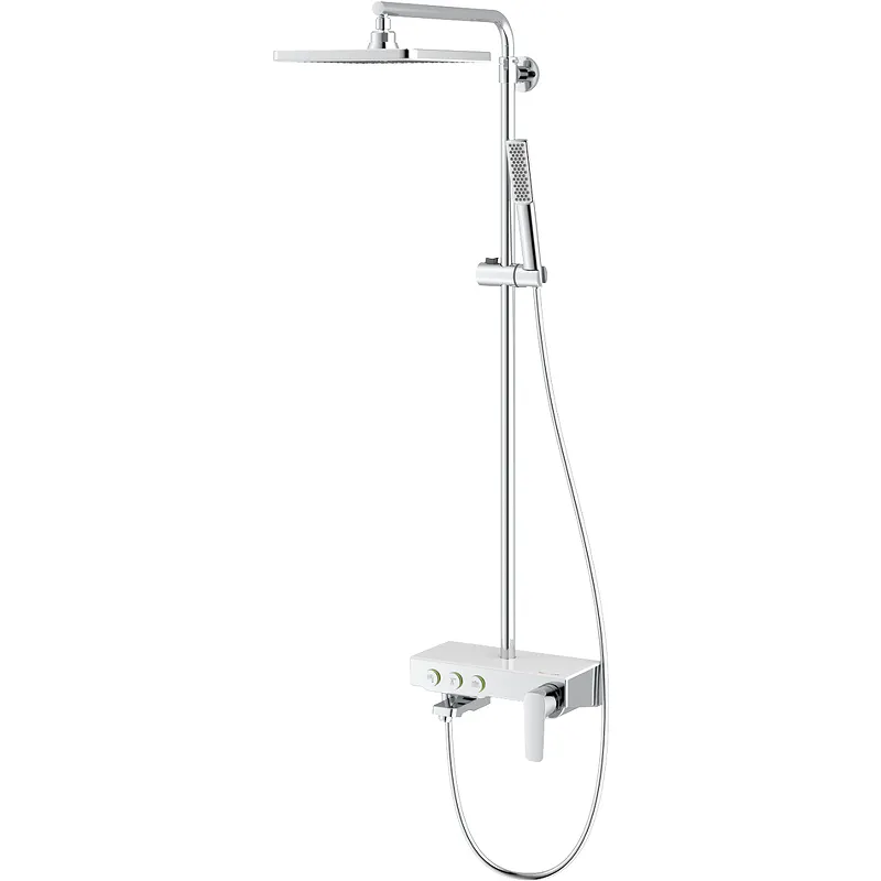 - Современный стиль: Душевая система выполнена в современном стиле, сочетая хром и белое стекло.