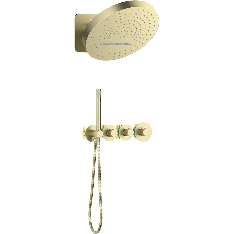 Душевая система Timo Saona SX-2329/17SM с термостатом — это идеальное решение для современного интерьера ванной комнаты. Изготовленная из высококачественной латуни, данная душевая система обеспечивает надежность и долговечность. Встраиваемый монтаж и стильный дизайн в золоте матовом цвете делают её не только функциональной, но и эстетически привлекательной.