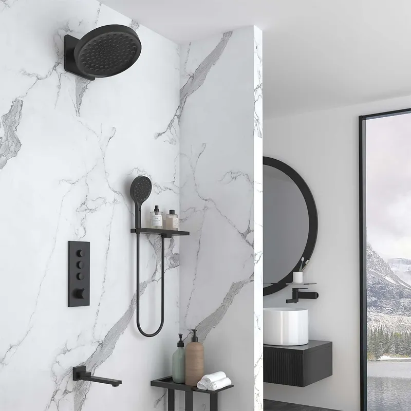 Душевая система Vincea Inspire с термостатом Черная матовая арт-VSFW-433TI3RMB — фото 14, Встраиваемые душевые комплекты