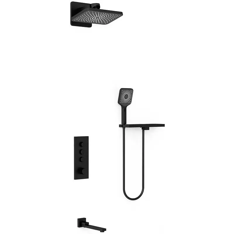 Душевая система Vincea Inspire VSFW-433TI4RMB с термостатом — идеальное решение для современных ванных комнат. Этот стильный и функциональный комплект обеспечивает комфорт и удобство благодаря встраиваемому монтажу и термостатическому управлению. Черная матовая поверхность придаёт изделию элегантный вид, который гармонично впишется в любой интерьер.