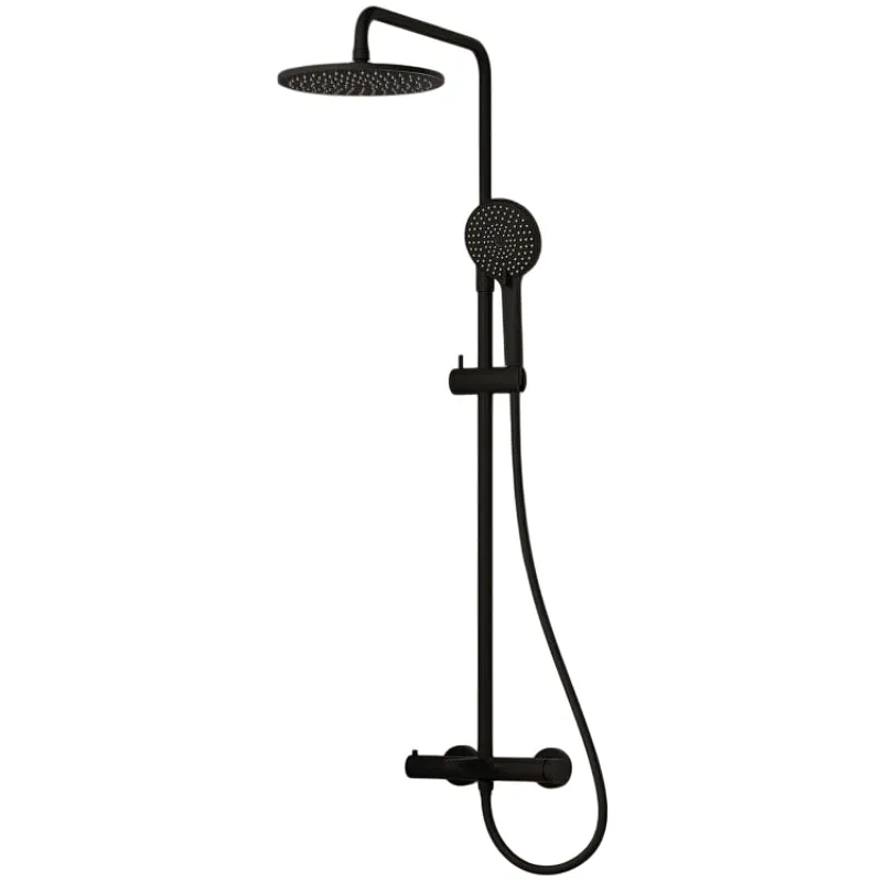- Черная матовая душевая система: Идеально вписывается в современный стиль интерьера.