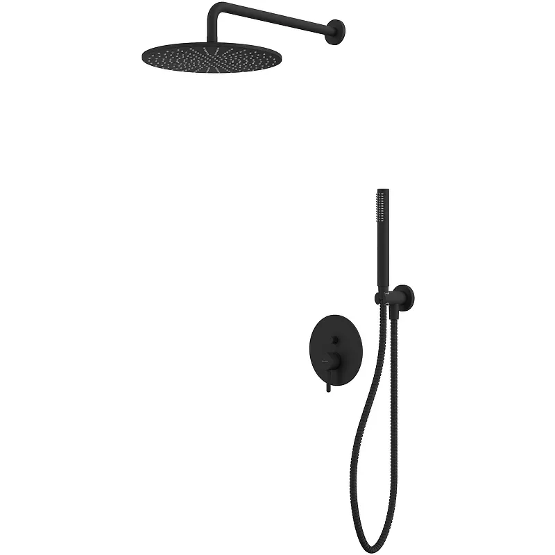 Душевая система Whitecross Y black YSET04BL.Характеристики: Цвет: черный матовый. Материал: латунь. Управление: однорычажное. Механизм: керамический картридж Kerox. Автоматический переключатель. Количество потребителей: 2. Два входа (для горячей и холодной воды) G 1/2. Два выхода смешанной воды G 1/2. Держатель ручного душа с пластиковой вставкой. Диаметр верхнего душа: 300 мм. Система очистки от известковых отложений. Шаровый шарнир. Размер ручного душа (ШхВхД): 26х225х26. Количество режимов струи ручного душа: 1. Пропускная способность при давлении 3 Бар: верхний душ - 21 л/мин / ручной душ - 13.5 л/мин. Длина кронштейна верхнего душа: 405 мм. Душевой шланг в металлической оплетке, длиной 1500 мм. Двусторонняя защита от скручивания. Отверстия для монтажа: 3. Монтаж: встраиваемый. В комплекте поставки: Смеситель для душа (внешняя и внутренняя части) на 2 потребителя - Y1235BL. Ручной душ MICRO-BL. Верхний душ Y1300BL. Кронштейн для верхнего душа Y1310BL. Душевой шланг SHS150BL. Шланговое подключение с держателем ручного душа Y1005BL.