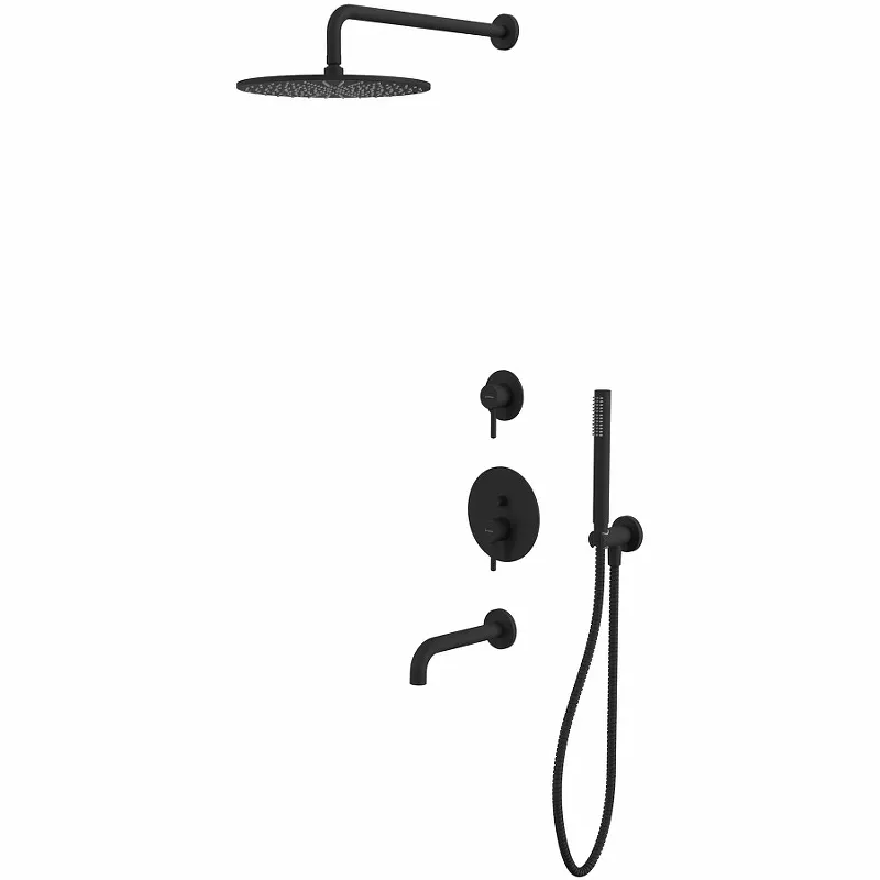 Душевая система Whitecross Y black YSET07BL.Характеристики: Цвет: черный матовый. Материал: латунь. Управление: однорычажное. Механизм: керамический картридж Kerox. Излив: фиксированный. Аэратор Neoperl. Автоматический переключатель. Количество потребителей: 3. Два входа (для горячей и холодной воды) G 1/2. Два выхода смешанной воды G 1/2. Держатель ручного душа с пластиковой вставкой. Диаметр верхнего душа: 300 мм. Система очистки от известковых отложений. Шаровый шарнир. Размер ручного душа (ШхВхД): 26х225х26. Количество режимов струи ручного душа: 1. Пропускная способность при давлении 3 Бар: верхний душ - 23 л/мин / ручной душ - 13,5 л/мин / излив - 21 л/мин. Длина кронштейна верхнего душа: 405 мм. Душевой шланг в металлической оплетке, длиной 1500 мм. Двусторонняя защита от скручивания. Отверстия для монтажа: 5. Монтаж: встраиваемый. В комплекте поставки: Смеситель (внешняя и внутренняя части) на 2 потребителя - Y1235BL. Смеситель (внешняя и внутренняя части) на 1 потребитель - Y1245BL. Излив Y1200BL. Ручной душ MICRO-BL. Верхний душ Y1300BL. Кронштейн для верхнего душа Y1310BL. Душевой шланг SHS150BL. Шланговое подключение с держателем ручного душа Y1005BL.