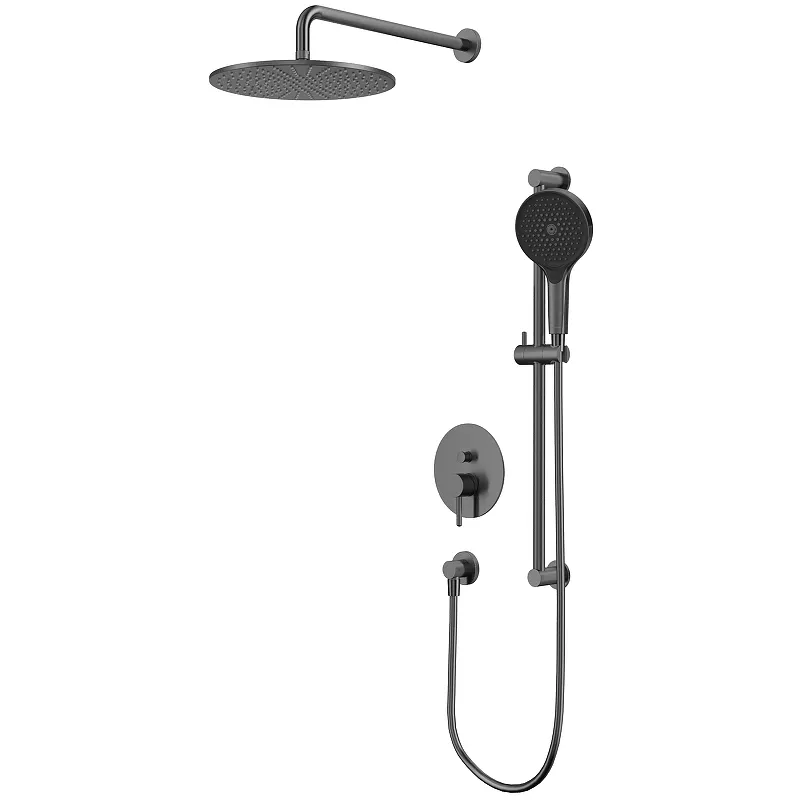 Душевая система Whitecross Y gunmetal YSET05TOPGM.Характеристики: Цвет: оружейная сталь. Материал: латунь. Покрытие: PVD. Управление: однорычажное. Механизм: керамический картридж Kerox. Автоматический переключатель. Количество потребителей: 2. Два входа (для горячей и холодной воды) G 1/2. Два выхода смешанной воды G 1/2. Держатель ручного душа регулируемый по высоте. Диаметр верхнего душа: 300 мм. Система очистки от известковых отложений. Шаровый шарнир. Размер ручного душа (ШхВ): 132х250 мм. Количество режимов струи ручного душа: 3 (дождь, массаж, туман). Пропускная способность при давлении 3 Бар: верхний душ - 21 л/мин / ручной душ - 13,5 л/мин. Длина кронштейна верхнего душа: 405 мм. Душевой шланг в пластиковой оплетке, длиной 1500 мм. Двусторонняя защита от скручивания. Высота душевой штанги: 720 мм. Отверстия для монтажа: 5. Монтаж: встраиваемый. В комплекте поставки: Смеситель (внешняя и внутренняя части) на 2 потребителя - Y1235GM. Ручной душ TOP-GM. Верхний душ Y1300GM. Кронштейн для верхнего душа Y1310GM. Душевой шланг SHP150GM. Шланговое подключение Y1008GM. Душевая штанга с держателем ручного душа Y1010GM.