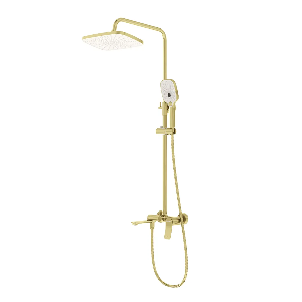 Душевая стойка Advans 500.K35.09.320 ТМ GROSSMAN в брашированном золотом исполнении с тропическим душем, лейкой и изливом - это идеальное сочетание высокого качества и доступной цены. Она подходит для установки в душевых углах, перегородках, а так же над ванной. Ключевые особенности: