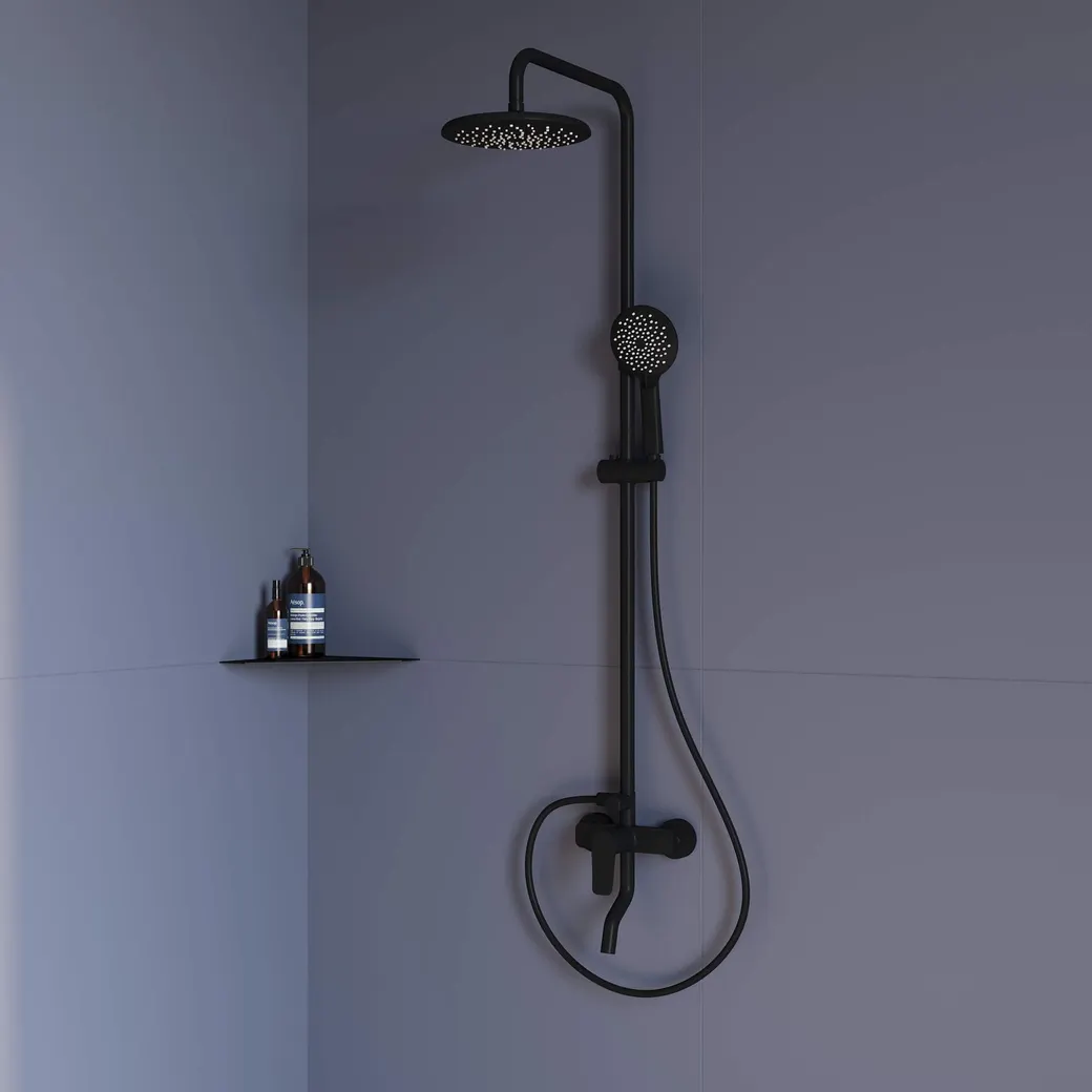 Душевая стойка RGW SP-25-B Черный Головной душ/Смеситель (Ручной душ.Шланг 1,5 м.)