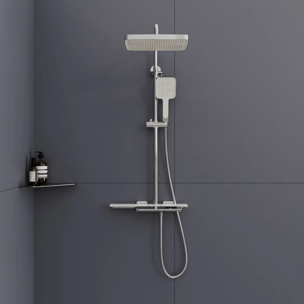 - Термостатический смеситель из латуни: Обеспечивает безопасность и защиту от перепадов температуры, что делает использование душевой стойки максимально комфортным.