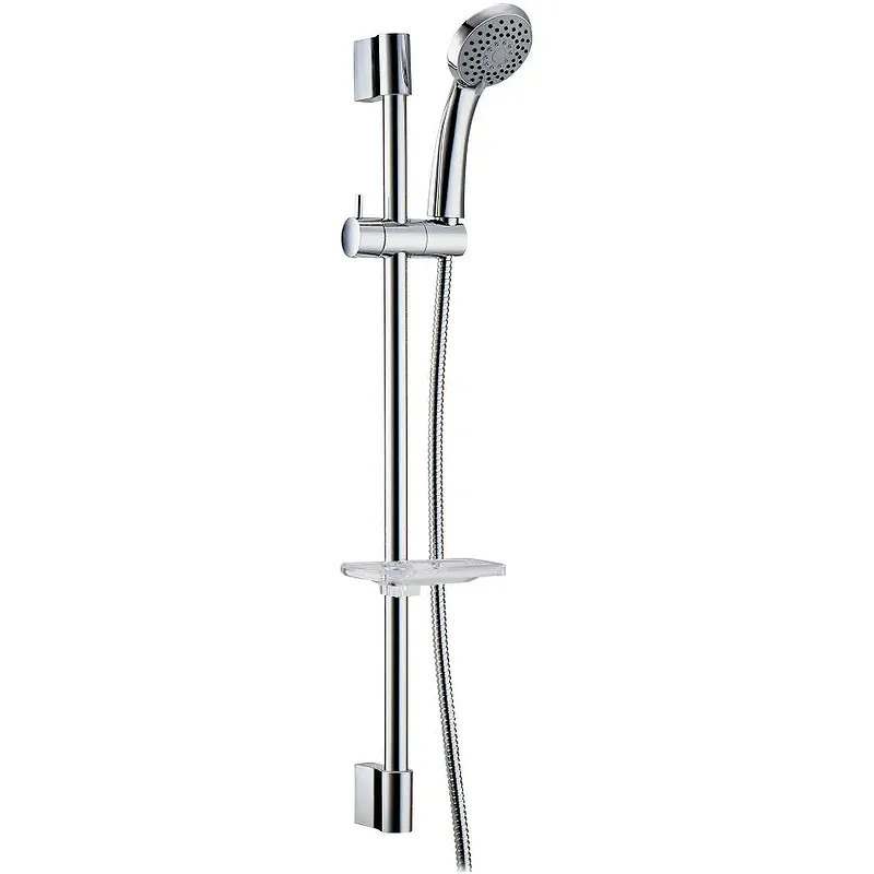- Полная комплектация: Включает душевую штангу, лейку, шланг длиной 1500 мм, мыльницу и держатель для лейки.