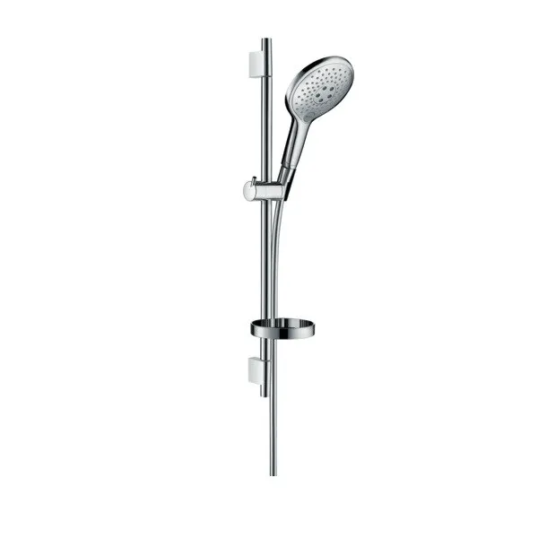 Душевой гарнитур, Hansgrohe, Raindance Select E, размер штанги, мм-650, размер шланга, мм-1600, диаметр ручного душа, мм-150, количество режимов-3, тип струи-RainAir, CaresseAir, Mix, комплектация-мыльница, цвет-хром арт-27802000
