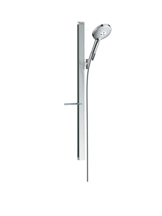 Душевой гарнитур, Hansgrohe, Raindance Select S, размер штанги, мм-900, размер шланга, мм-1600, диаметр ручного душа, мм-125, количество режимов-3, тип струи-RainAir, Rain, WhirlAir, комплектация-мыльница, цвет-хром арт-27648000