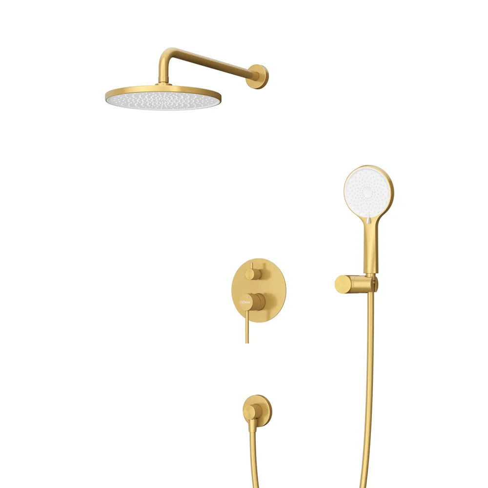 - Эстетический дизайн: Брашированное золото в сочетании с нержавеющей сталью создаёт эффектный акцент в интерьере ванной комнаты.
