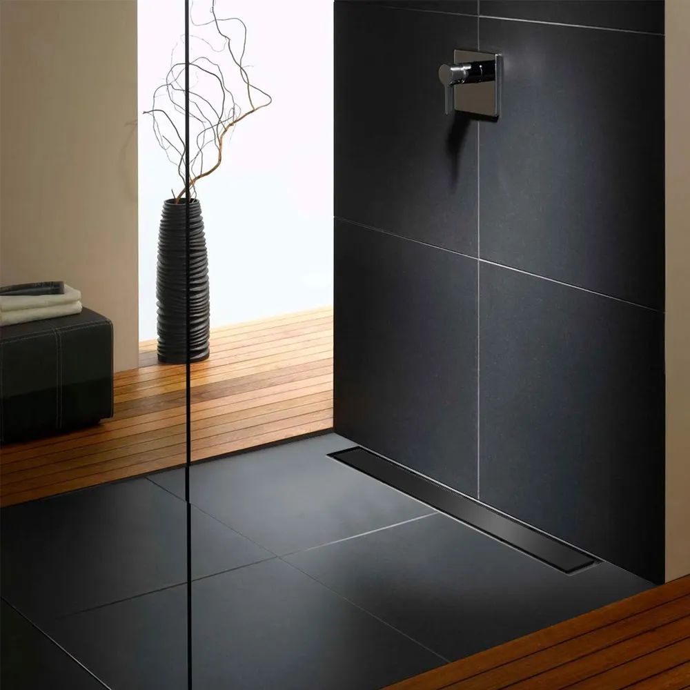 Душевой лоток AZARIO D40 Klasik 750 мм пристенный, боковой слив, пластиковый, с черной решеткой арт-AZ-CH 750 KC2