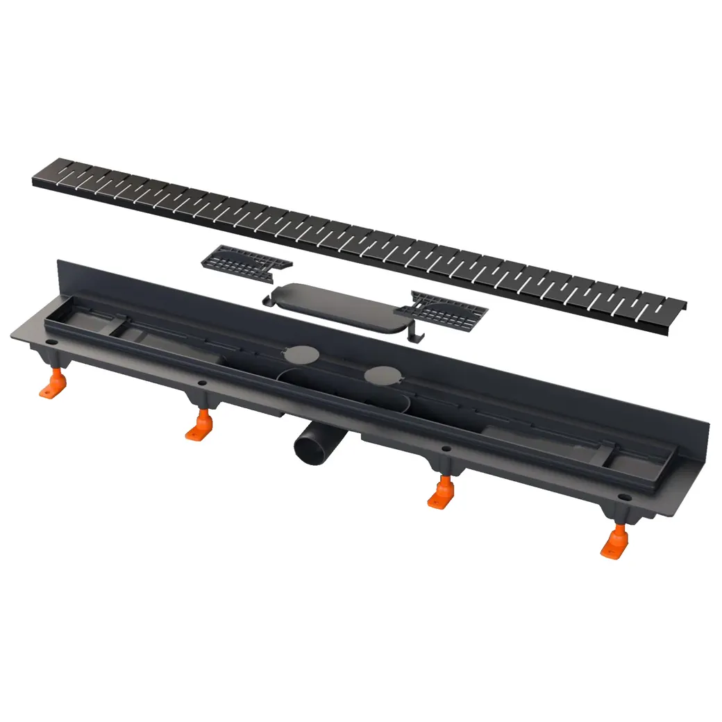 Душевой лоток AZARIO D50 Medium 750 мм, боковой слив, пластиковый, перфорированная решетка, черный арт-AZ-CH 750/50 MC