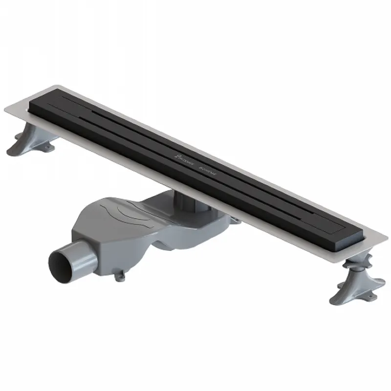 Душевой лоток Boheme Premium Trendy 60 983-60-B.Характеристики: Цвет решетки: черный. Материал: нержавеющая сталь. Габариты (ШхВхД): 650х61х110 мм. Диаметр слива: 50 мм. Диаметр подключения: 50 мм. Длина внешней части: 60 мм. Ширина внешней части: 600 мм. Вид затвора: комбинированный. Регулировка по высоте. Направление выпуска: боковое (горизонтальное). Максимальная пропускная способность: 48 л/мин. Вид решетки: со щелью для воды. Высота гидрозатвора: 25 мм. Гидрозатвор съемный. Масштаб регулировки: 20 см. Грязеуловитель. Вид изоляции: рулон. Предельно допустимая нагрузка: 300 кг. Размещение: вровень с полом. Монтаж: в пол. Оснащение: сифон / опоры / сетка /защитная заглушка / компенсатор по высоте / изоляционная лента. В комплекте поставки: Душевой лоток. Решетка из нержавеющей стали. Сифон. Уловитель волос. Гидрозатвор. Гидроизоляционная лента.