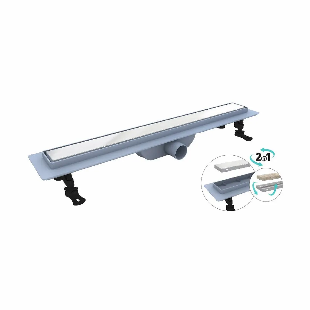 Душевой трап Leo-21 – это сантехническое изделие, созданное для отведения воды из зоны, душевого пространства, выложенное керамической плиткой или мозаикой. Модельный ряд представлен в двух вариантах длины: 60 и 80 см. Трап укомплектован комбинированным затвором гидро+сухой затвор, такая конструкция позволяет на 100% исключить проникновение неприятного запаха в ванную комнату. Решётка выполнена из нержавеющей стали AISI 304, а лоток выполнен из высокопрочного ABS-пластика, такая конструкция обеспечивает максимальную надёжность конструкции более 10 лет. Решётка двухсторонняя-перевернув решётку в неё можно вложить плитку, что позволит получить идеальное сочетание с основным покрытием пола, в комплекте гидроизоляционная лента. Для эффективного стока воды лоток трапа имеет технический уклон, а для улавливания крупного мусора и волос в конструкцию входит съёмный фильтр-сетка, с помощью которого трап с лёгкостью очищается. В комплектации присутствуют ножки с регулировкой высоты, что позволит с лёгкостью произвести