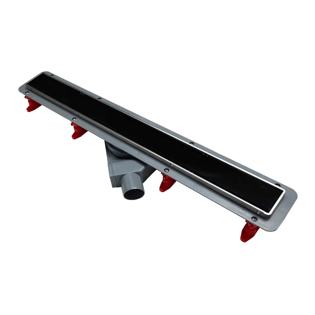 Душевой лоток POINT Деметра с решеткой из нержавеющей стали с вставкой из черного стекла отличается новой минималистичной стальной рамкой, которая закрывает все видимые пластиковые детали слива. Состоит из основания из ABS-пластика, стальной реверсивной решётки для лотка, рамки для внешней решетки, улавливателя для волос, соединительного переходника с резиновым уплотнителем и S- образного сифона, изготовленного из полипропилена. Выходное отверстие - 50 мм, минимальная высота установки - 52 мм, пропускная способность - 48 л/мин. Сифон самоочищающийся с высотой гидроизоляции 25 мм, вращающийся на 360 градусов, с регулируемым по высоте редуктором для линейного слива, ножками для регулировки высоты и наклона, с набором для установки сухого затвора и грязеуловителем. Реверсивная решетка из нержавеющей стали AISI 304 класса K3 с возможностью использования как стороной со стеклом, так и стороной со стальным основанием.