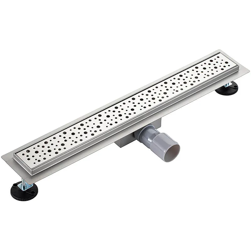 Душевой лоток Ростовская Мануфактура Сантехники РМС ТЛ-04-50х7.Характеристики: Цвет решетки: нержавеющая сталь. Материал: нержавеющая сталь (304). Размер решетки (ШхД): 500x70 мм. Высота: 125 мм. Регулировка по высоте. Направление выпуска: горизонтальный. Тип затвора: гидрозатвор. Вид решетки: перфорированный. Пропускная способность: 35-40 л/мин. Диаметр слива: 40 мм. Диаметр подключения к канализационной трубе: 50 мм. Установка: в пол. В комплекте поставки: Душевой лоток. Переходник на 50 мм.