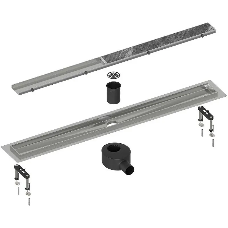 Душевой лоток Timo Drain System 100 DS230210/01.Душевой канал изготовлен из нержавеющей стали, отличающейся большой прочностью и долгой службой. Изделие отлично фиксируется в бетонную стяжку и устойчиво к воздействию агрессивных сред. Самоочищающийся сифон обеспечивает эффективную пропускную способность: 0,7 л/сек при уровне воды 10 мм над решеткой, и 0,8 л/сек - при 20 мм. Уровень гидрозатвора - 25 мм. Сухой затвор гарантирует максимальную защиту от неприятных запахов. Особая конструкция дренажного канала позволяет использование ручного инструмента для прочистки отводной трубы. Дизайн решетки создает эстетичный эффект, а на двухстороннюю декоративную панель можно наклеить вашу плитку. Сталь с матовой поверхностью гармонично вписывается в пространство пола.Характеристики: Цвет решетки: сатин. Материал решетки и желоба: нержавеющая сталь. Материал сифона: пластик. Габариты (ШхВхД): 1050х150х119 мм. Габариты решетки (ШхД): 993х51 мм. Максимальная высота для монтажа: 150 мм. Минимальная высота для монтажа: 112 мм. Вид решетки: двухсторонняя (с щелью для воды / под плитку). Вид затвора: комбинированный. Вид изоляции: рулон. Выпуск: горизонтальный. Сифон поворотный на 360 градусов. Диаметр слива: 50 мм. Пропускная способность: до 50 л/мин. Грязеуловитель. Предельно допустимая нагрузка: 300 кг. Размещение: вровень с полом. Монтаж: в пол. В комплекте поставки: Душевой лоток. Заглушка монтажная. Поворотный сифон DN50, выход вбок. Комплект регулируемых опор. Стакан с мембраной. Улавливатель волос и мусора. Гидроизоляционная лента. Сервисный ключ.