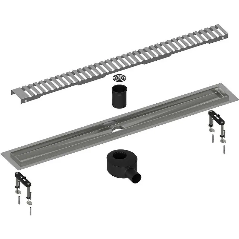 Душевой лоток Timo Drain System 80 DS230108/01.Душевой канал изготовлен из нержавеющей стали, отличающейся большой прочностью и долгой службой. Изделие отлично фиксируется в бетонную стяжку и устойчиво к воздействию агрессивных сред. Самоочищающийся сифон обеспечивает эффективную пропускную способность: 0,7 л/сек при уровне воды 10 мм над решеткой, и 0,8 л/сек - при 20 мм. Уровень гидрозатвора - 25 мм. Сухой затвор гарантирует максимальную защиту от неприятных запахов. Особая конструкция дренажного канала позволяет использование ручного инструмента для прочистки отводной трубы. Дизайн решетки создает эстетичный эффект. Сталь с матовой поверхностью гармонично вписывается в пространство пола.Характеристики: Цвет решетки: сатин. Материал решетки и желоба: нержавеющая сталь. Материал сифона: пластик. Габариты (ШхВхД): 850х150х119 мм. Габариты решетки (ШхД): 794х60 мм. Максимальная высота для монтажа: 150 мм. Минимальная высота для монтажа: 112 мм. Вид решетки: перфорированная. Вид затвора: комбинированный. Вид изоляции: рулон. Выпуск: горизонтальный. Сифон поворотный на 360 градусов. Диаметр слива: 50 мм. Пропускная способность: до 50 л/мин. Грязеуловитель. Предельно допустимая нагрузка: 300 кг. Размещение: вровень с полом. Монтаж: в пол. В комплекте поставки: Душевой лоток. Заглушка монтажная. Поворотный сифон DN50, выход вбок. Комплект регулируемых опор. Стакан с мембраной. Улавливатель волос и мусора. Гидроизоляционная лента. Сервисный ключ.