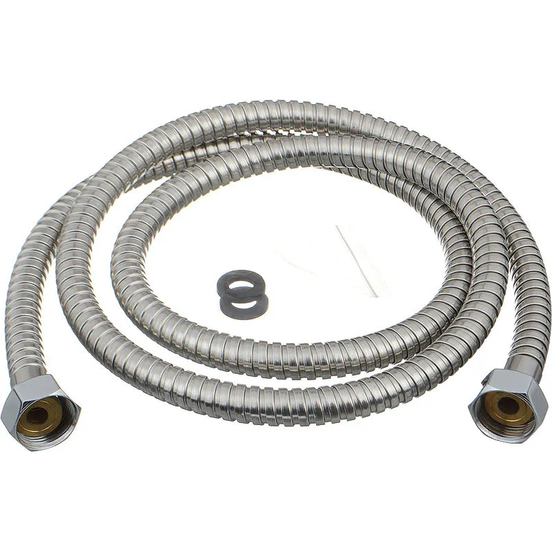 Душевой шланг Melodia della vita Standard Middle MKP20340BL.Характеристики: Цвет: хром. Материал: нержавеющая сталь. Внутренний шланг из ПВХ. Оплетка шланга имеет двойной зажим. Диаметр шланга: 14 мм. Длина душевого шланга 1500 мм. Защита от перекручивания. Стандарт подводки: G 1/2. Присоединение к смесителю и лейке с помощью накидной гайки M22. В комплекте поставки: Душевой шланг. Упаковка блистер.