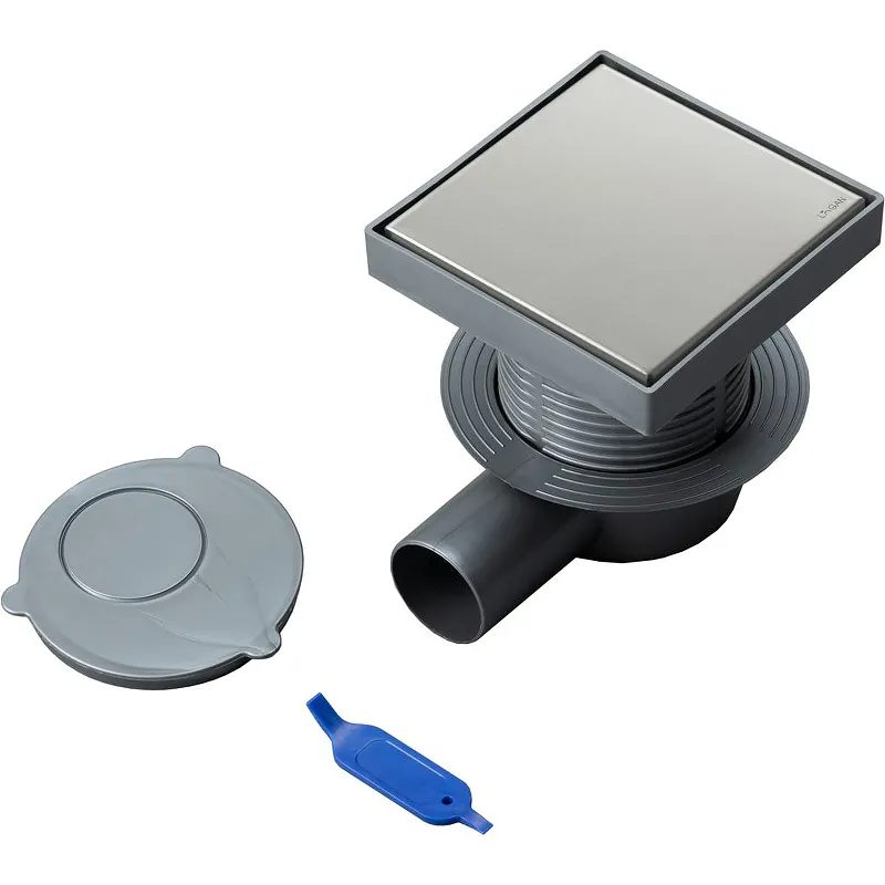 Точечный душевой трап Logan L005-150 306896 с двухсторонней решеткой.Характеристики: Цвет решетки: нержавеющая сталь. Материал решетки: нержавеющая сталь. Лоток со стаканом слива из пластика. Размер решетки (ШхД): 150х150 мм. Вид решетки: двухсторонняя. Вид затвора: сухой. Грязеулавливающая сетка. Диаметр сливного отверстия: 50 мм. Класс нагрузки K=300 кг. Направление выпуска: горизонтальное. Пропускная способность: 45 л/мин. Монтаж: в пол. Соединение с канализационной трубой DN 50. В комплекте поставки: Лоток со стаканом слива из полипропилена. Двухсторонняя вставка из нержавеющей стали/под плитку. Сифон с боковым выходом 50 мм. Грязеуловитель. Сухой затвор. Ключ для снятия решетки.