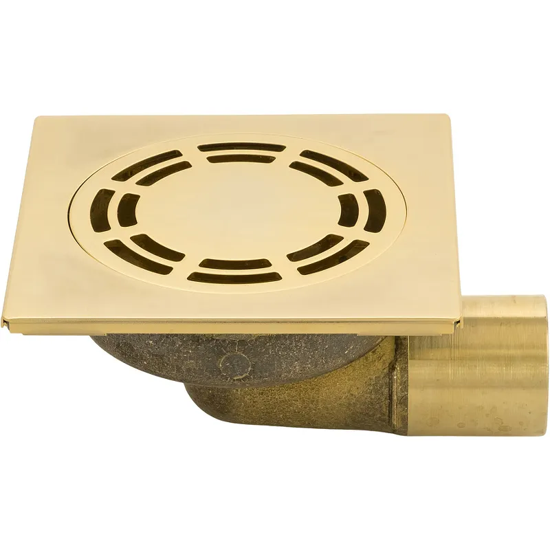 - Элегантный дизайн: Золотой цвет и перфорированная решетка делают этот душевой трап привлекательным элементом вашего интерьера.