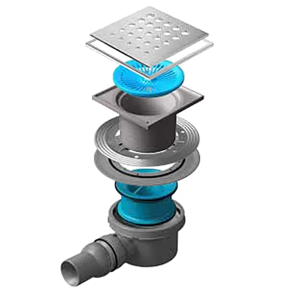 Душевой трап Pestan Confluo Standard 13000072 - есть регулируемый угол выхода на 15 градусов, легко монтируется и обслуживается. Производится из качественных материалов. Пригоден для установки в ванных комнатах и душевых квартир, в душевых гостиниц, аэропортов, фитнес-центров, больниц, супермаркетов. Технические характеристики: покрытие металлических деталей: полированная сталь, размер выхода: диаметр 50 мм, дизайн: металл с перфорацией, минимальная монтажная высота: 64 мм, затвор: гидрозатвор, база: с 1 выходом, высота водного столба: 34 мм, тип: точечный, размер решетки: 150х150 мм, пропускная способность: 48 л/мин, поворот базы: 360 градусов, размер входа: диаметр 40 мм, направление выпуска: горизонтальное. Комплект поставки: база / сифон - 1 шт., стакан слива - 1 шт., кольцо гидроизоляции - 1 шт., металлический фланец для гидроизоляции - 1 шт., корпус / карьер под решетку - 1 шт., сетка для улавливания волос и мелкого мусора - 1 шт., решетка - 1 шт., рамка - 1 шт., комплект креплений - 1 комп., крышка для защиты внутренней части карьера при монтаже - 1 шт.