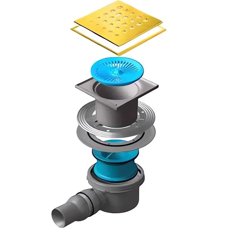 Душевой трап Pestan Confluo Standard 13000132.Характеристики: Цвет: золото глянец. Материал решетки: нержавеющая сталь. Материал корпуса: полипропилен. Тип трапа: точечный. Выпуск: горизонтальный, в бок. Форма: квадратный. Вид затвора: мокрый, гидрозатвор. Размер решетки: 144х144 мм. База: c 1 выходом. Диаметр выхода: 50 мм. Минимальная высота установки: 78 мм. Максимальная нагрузка: 300 кг. Пропускная способность: 48 л/мин. Монтаж: напольный. В комплекте поставки: База/сифон. Стакан слива. Кольцо гидроизоляции. Металлический фланец для гидроизоляции. Корпус/карьер под решетку. Сетка для улавливания волос и мелкого мусора. Решетка. Комплект креплений. Крышка для защиты внутренней части карьера при монтаже.