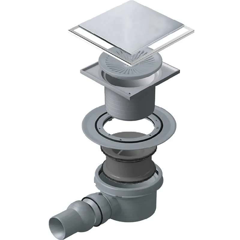 Точечный душевой трап Pestan Confluo Standard 13702556 с двухсторонней решеткой 15х15.Характеристики: Дизайн-вставка (решетка): двухсторонняя (с щелью для воды / полая под плитку). Цвет и поверхность решетки: хром глянцевый. Цвет и поверхность рамки: хром матовый. Материал решетки: нержавеющая сталь AISI 304 SS. Материал корпуса и сифона: полипропилен. База: с 1 выходом. Направление выпуска: горизонтальное. Поворот базы: на 360 градусов. Регулируемый угол выхода на 15 градусов. Размер решетки (ШхД): 15х15 см. Пропускная способность: 48 л/мин. Минимальная монтажная высота: 78 мм. Высота водного столба: 34 мм. Диаметр выхода: 50 мм. Гидрозавтор. В комплекте поставки: база / сифон; стакан слива; кольцо гидроизоляции; корпус / карьер под решетку; держатель под плитку; комплект креплений; решетка двухсторонняя; крышка для защиты внутренней части карьера при монтаже.