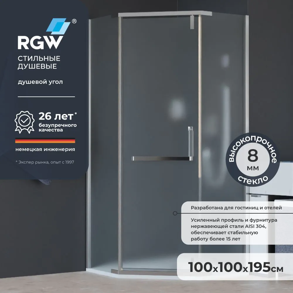 Создайте современный уголок для вашей ванной комнаты с душевым уголком 100x100 RGW HO-081. Этот душевой уголок с распашными дверями и трапециевидной формой обладает матовым стеклом и хромированным профилем, что обеспечивает стильный внешний вид и надежность. Прозрачный душевой уголок RGW без поддона станет функциональным элементом вашего интерьера, благодаря универсальной установке и долговечности. Теперь купить душевой уголок с доставкой по России — это просто и доступно.