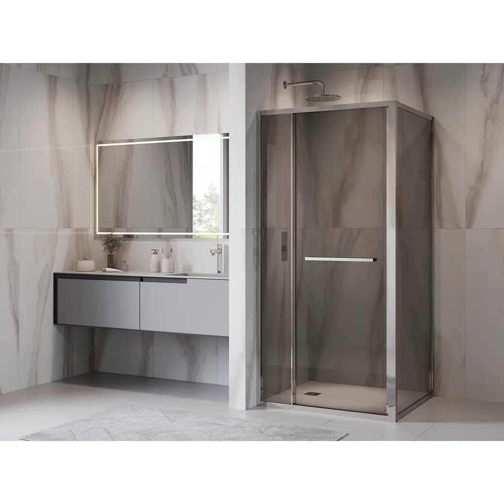 Душевой уголок 120x100 RGW LE-45 — это функциональное решение для современных ванных комнат. Модель оснащена хромированным профилем и тонированным серым стеклом, что придаёт ей стильный и современный вид. Этот душевой уголок с раздвижными дверями без поддона отличается прочностью и удобством в использовании, благодаря премиальному закалённому стеклу и инновационному механизму открывания.