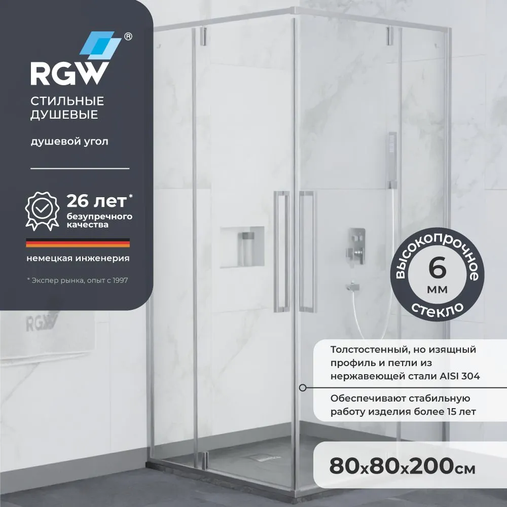 Душевой уголок 80x80 RGW SV-33 — это стильное и практичное решение для вашей ванной комнаты. Прозрачный душевой уголок с хромированным профилем и квадратной формой легко впишется в любой интерьер, создавая визуальное пространство и комфорт. Особенно стоит отметить его надежность и долговечность, обусловленные использованием высококачественного закаленного стекла толщиной 6 мм.