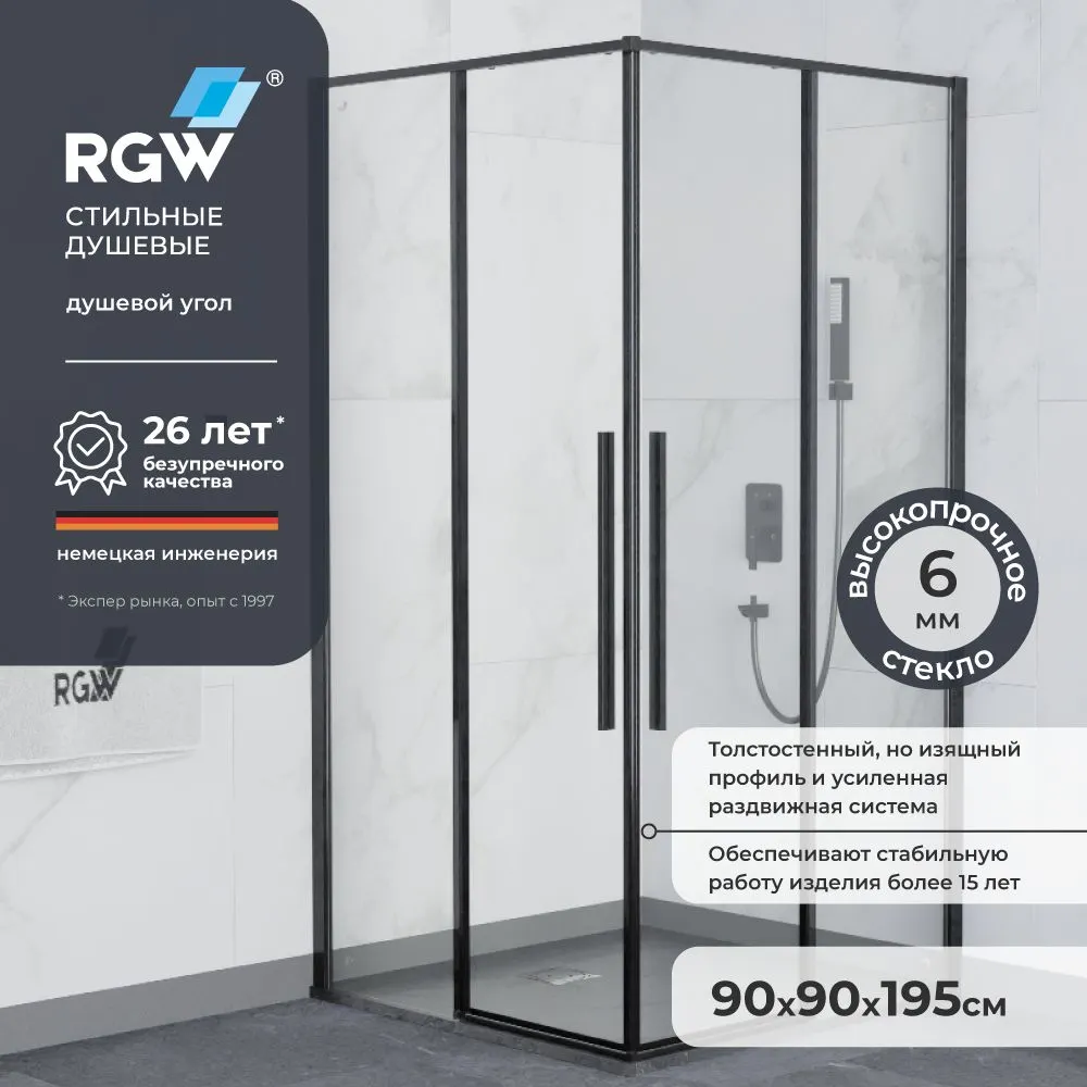 Душевой уголок 90x90 от бренда RGW — это сочетание функциональности и современного дизайна, идеально подходящее для любой ванной комнаты. Душевой уголок RGW SV-31-B с раздвижными дверями, квадратной формой и прозрачным стеклом создаёт ощущение простора. Черный профиль подчеркивает стиль и элегантность, идеально сочетаясь с современными интерьерами.
