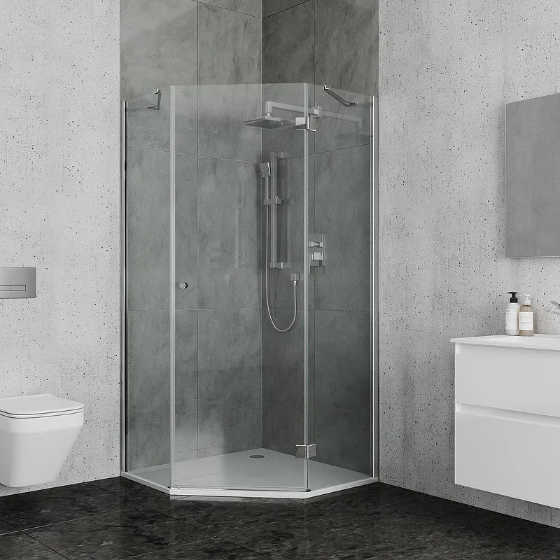 Душевой уголок Ambassador Diamond 90х90 — это стильное и функциональное решение для вашей ванной комнаты. Модель с распашной дверью и хромированным профилем выполнена из анодированного термостойкого алюминия, обеспечивающего долговечность и стойкость к коррозии. Прозрачное стекло с покрытием EasyClean защищено от водяных разводов и коррозии, что делает уход за уголком лёгким и быстрым.
