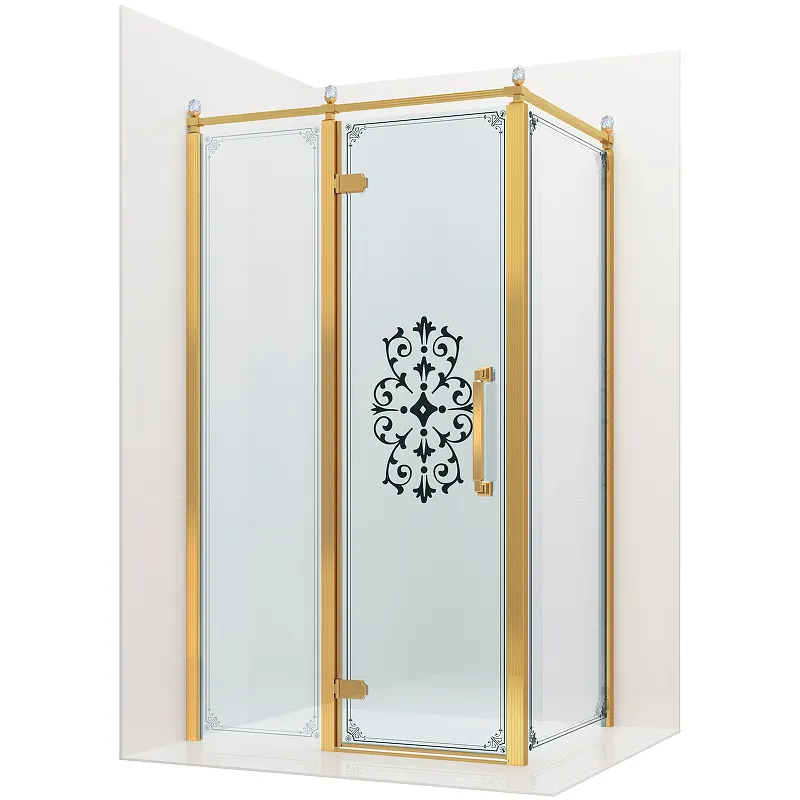 Элегантный душевой уголок Ambassador Royal, выполненный в золотом профиле и дополненный прозрачным стеклом с изысканным рисунком, станет функциональным дополнением современной ванной комнаты. Эта немецкая модель предлагает удобство распашных дверей и простоту в уходе благодаря покрытию Easy Clean, которое защищает стекло от известкового налета.