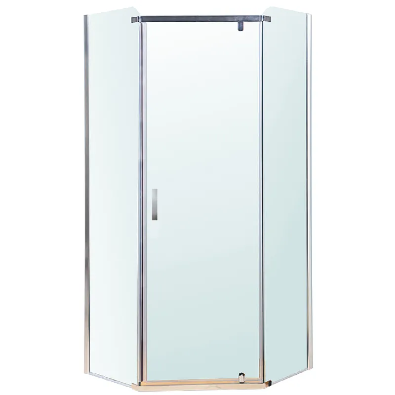 - Душевой уголок без поддона, с хромированным профилем и прозрачным стеклом.