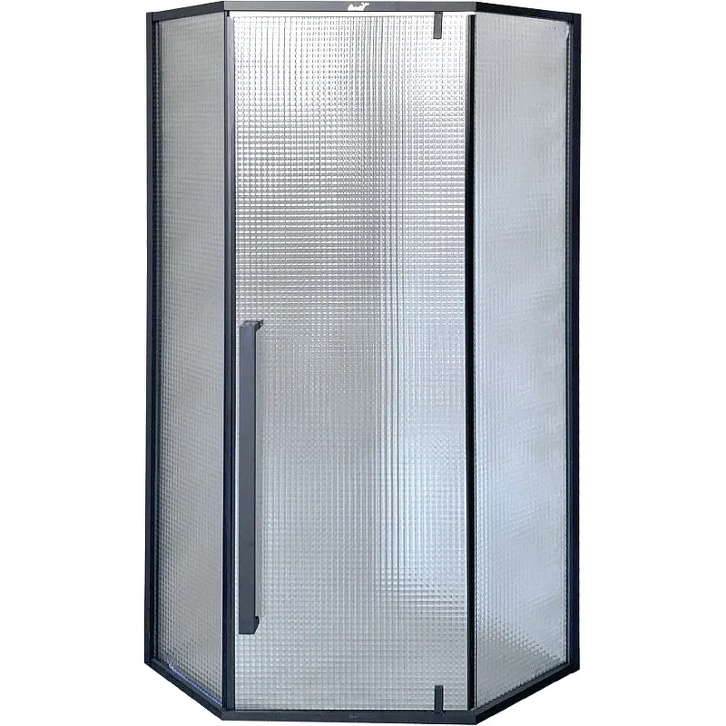 Душевой уголок Ceruttispa 90x90 C3ABD.Характеристики: Форма: трапеция. Ориентация: универсальная. Материал профиля: алюминий. Верхний и нижний профиль-держатель стекла из чистой стали. Цвет профиля: черный. Материал стенок: закаленное стекло. Толщина стенок: 6 мм. Тип стекла: рифленое. Габариты (ШхВxД): 90 x 195 x 90 cм. Конструкция двери: распашная. Количество секций двери: 1. В комплекте поставки: Душевой уголок. Комплект креплений.
