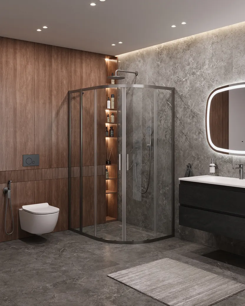 - Универсальный монтаж: Возможность установки на поддон или прямо на пол, что позволяет выбрать наиболее удобный способ размещения.