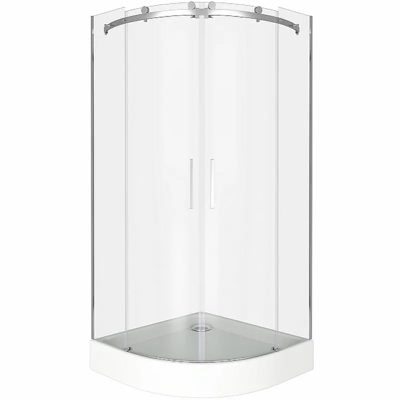 Душевой уголок Good Door Galaxy R-TD-90-C-CH с раздвижными дверями и элегантным хромированным профилем станет стильным дополнением современной ванной комнаты. Изготовленный в России, он сочетает в себе прочность и эстетичность благодаря использованию антикоррозийного сплава и прозрачного закаленного стекла толщиной 6 мм. Полукруглая форма изделия позволяет эффективно использовать пространство, а двойные ролики обеспечивают плавное и бесшумное открывание дверей.