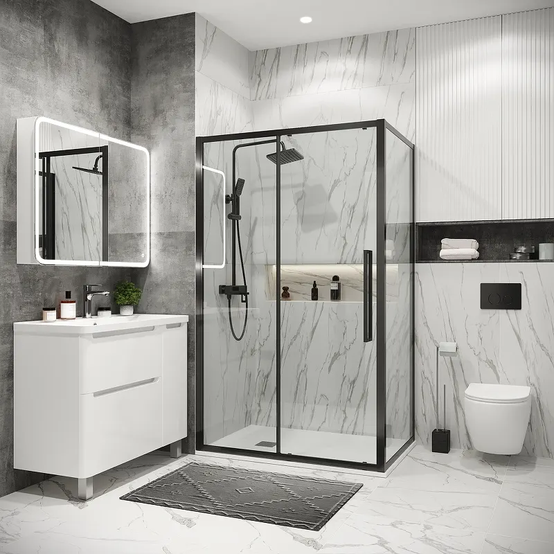 - Эстетика и стиль: Профиль графит сатин и прозрачное стекло создают современный и элегантный вид, подходящий для любого дизайна ванной комнаты.