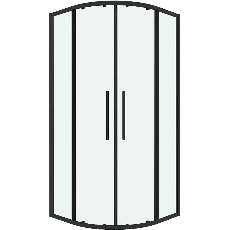 Душевой уголок Grossman Cosmo 80х80 301.K33.02.8080.21.00.Характеристики: Цвет профиля: черный матовый. Материал профиля: анодированный алюминий. Исполнение полотна двери: закаленное прозрачное стекло, толщиной 6 мм. Размеры (ШхВхД): 800x1950х800 мм. Размеры с диапазоном регулировок (ШхД): 785-800х785-800 мм. Ширина входа: 411 мм. Конструкция двери: раздвижная. Количество секций двери: 2. Ручки из нержавеющей стали, высотой 320 мм. Двойные металлические ролики. Регулировка ширины и длины предусмотрена за счет боковых профилей, что позволяет без проблем установить изделие даже при кривизне стен. Форма: четверть круга. Ориентация: универсальная. Монтаж: пристенный в угол. Установка: на поддон, на пол. В комплекте поставки: Душевой уголок.