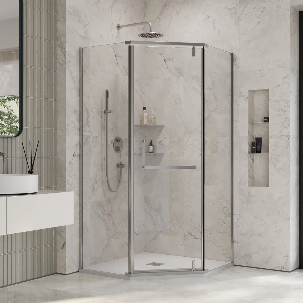 Душевой уголок 90x90 от INRAIN — это сочетание стиля и функциональности для вашей ванной комнаты. Этот прозрачный душевой уголок с хромированным профилем прекрасно подойдет для современных интерьеров. Стеклянный душевой уголок с толщиной 8 мм обладает высокой прочностью, что гарантирует его долговечность. Купить душевой уголок INRAIN можно с доставкой по России.