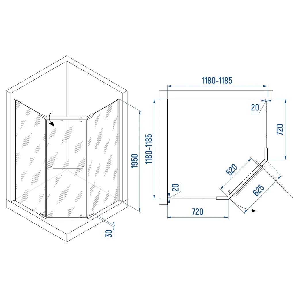 Душевой уголок INRAIN VIN-081 / 120х120х195 / Трапеция