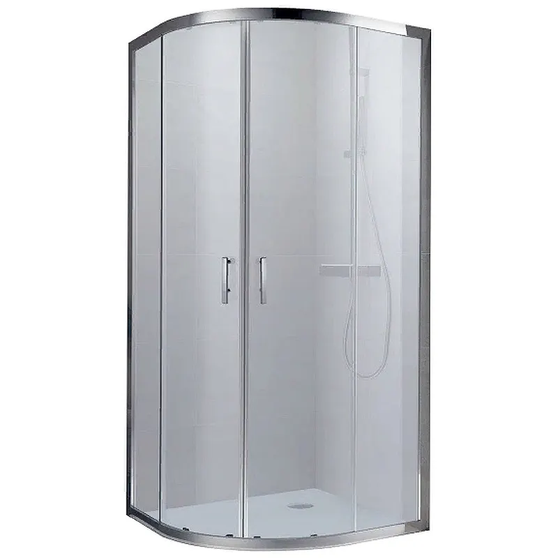 Душевой уголок Koller Pool Aqua Line 90X90 R90RG.Технические характеристики: Цвет профиля: хром. Материал профиля: алюминий. Габариты уголка: 90x190x90 см. Исполнение полотна двери: стекло матовое. Система расификации (отсутствие разводов от капель воды). Ширина входа: 56 см. Размер регулируется (ДхШ): 890-910x890-910 мм. Конструкция дверей: раздвижная, двойной ролик. Количество секций двери: две двери. Открывание двери: внутрь. Толщина полотна двери: 6 мм. Монтаж: на поддон, на пол. В комплекте поставки: душевой уголок, двойные ролики, магнитный замок, силиконовый уплотнитель.