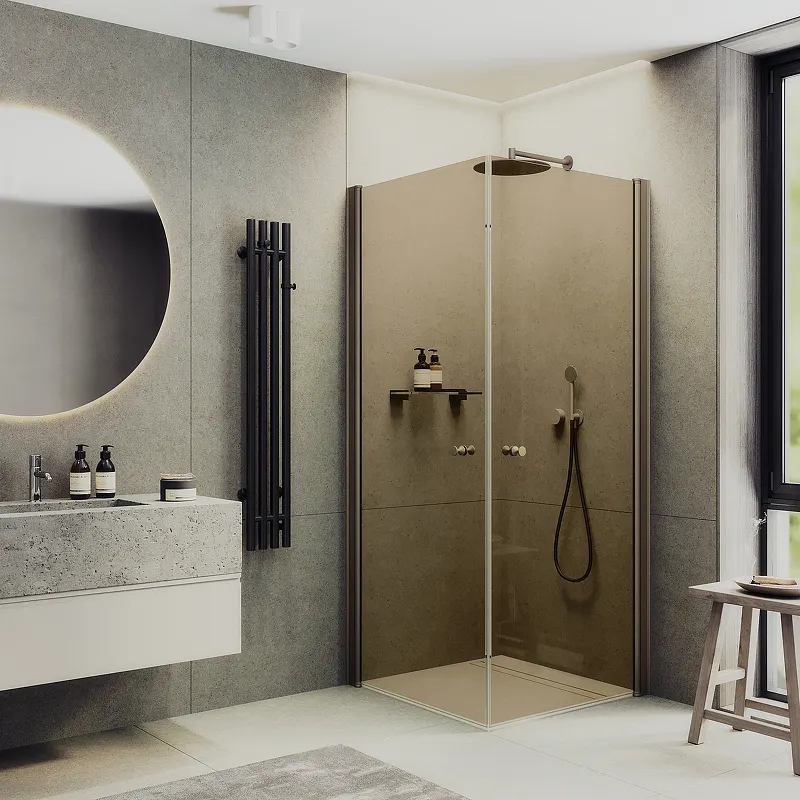 Душевой уголок Maybah Glass MGY-1302-2 900x900x1980 на монопетлях.Душевой уголок на монопетях - это элегантное и функциональное решение для вашей ванной комнаты. Он состоит из стеклянных панелей, которые крепятся к стене с помощью специального механизма, обеспечивая надёжность и герметичность соединения.Характеристики: Цвет профиля: бронза. Материал профиля: анодированный алюминий. Вид профиля: монопетли. Исполнение полотна дверей: бронзовое закаленное стекло, толщиной 6 мм. Размеры (ШхВхД): 905х1980х895 мм. Регулировочные размеры (ШхД): 905-915х905-915 мм. Конструкция дверей: распашная. Форма: квадратная. Ориентация: универсальная. Установка: на поддон, на пол. Монтаж: пристенный, в угол. В комплекте поставки: Стекло закаленное, цвет Бронза, толщина 6 мм 1950х840 - 2 шт. Монопетля, цвет Бронза - 2 шт. Комплект крепежа для монопетли - 2 шт. Уплотнитель магнитный - 1 комплект. Уплотнитель конденсатоотвод - 2 шт. Ручка кноб - 2 шт. Инструкция по монтажу - 1 шт.
