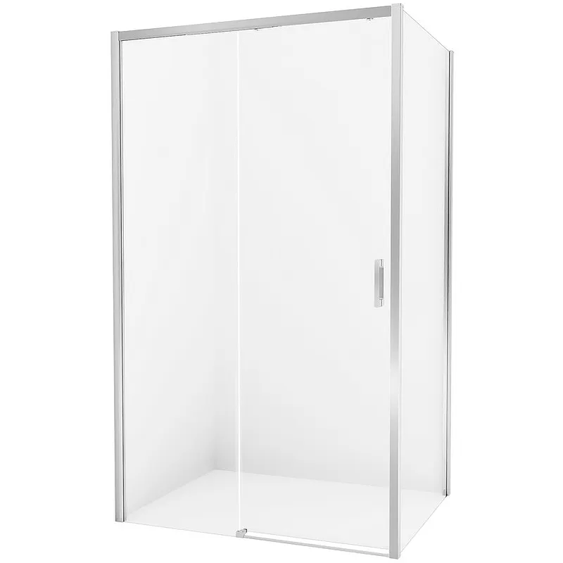 Представляем душевой уголок New Trendy Prime Chrome 140х100 L — функциональное решение для вашей ванной комнаты. Этот стеклянный душевой уголок с раздвижными дверями и хромированным профилем идеально подходит для установки в угол, обеспечивая современный стиль и комфорт.